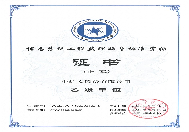 信息系統(tǒng)工程監(jiān)理服務(wù)標(biāo)準(zhǔn)貫標(biāo)乙級(jí)