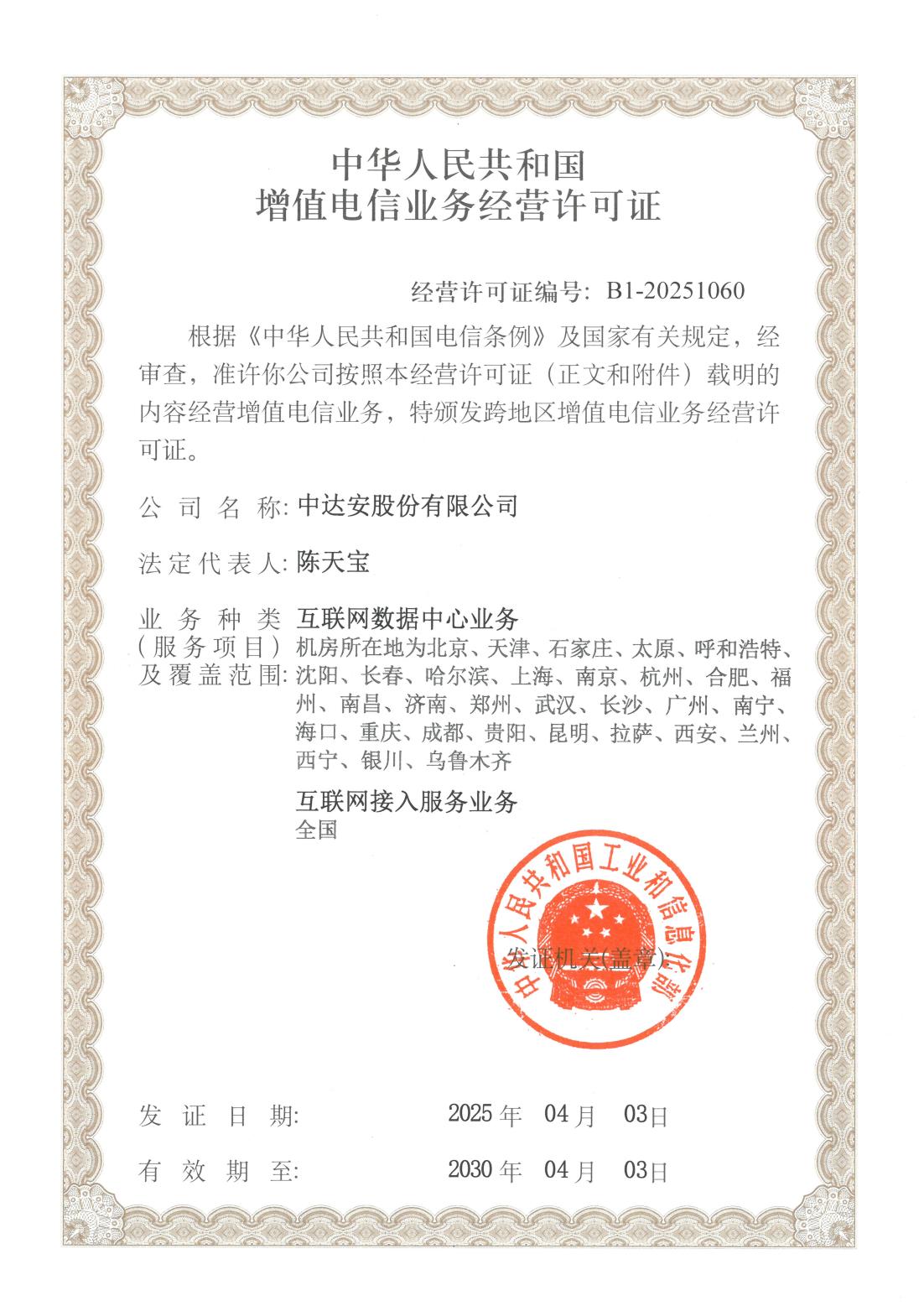 增值電信業(yè)務(wù)經(jīng)營許可證